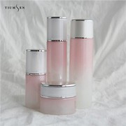 Avastage meie pumbaga kosmeetikapudelitega nahahoolduse luksuse uus mõõde. Selles keerukas komplektis on hoolikalt valmistatud kreemipudelid ja uhke kreemipurk, millest igaüks on ümbritsetud võluva kollase gradiendiga mattklaasiga, mida kroonivad läikivad hõbetatud kaaned. Viimase lihvi on klanitud must logo, mis lisab sellele säravale kollektsioonile salapära ja rafineeritust. Nautige oma meeli päikesesoojuses kollektsiooni kütkestava kollase gradiendiga mattklaasiga. Sujuv üleminek sügavast merevaigust pehmele sidrunile loob visuaalse meistriteose, kutsudes esile erksa päikesepaiste varjundid. See ainulaadne klaasihooldus ei tõsta mitte ainult esteetikat, vaid muudab teie nahahooldusrutiini säravaks rituaaliks, justkui jäädvustaks igas pudelis päikese sära.